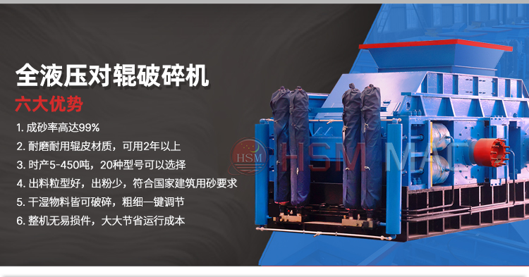 控制:通过调节两辊之间的间距,可以准确控制出料粒度,确保生产的砂子质量符合要求。